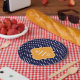 Navy Wt Polka Dot Cantaloupe Quatrefolie 3 Monogra Pappteller