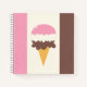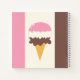 Neapolitane Eistüte in Erdbeere, Vanille und Schokoladengeschmack. Auf den Seiten dieses individuell gestalteten Notebooks mit rosa, creme und schokoladenbraunen, neapolitanischen Streifen. Es ist ein süßes Design für jeden, der Lieben, Eis zu essen!