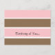 Eine süße Art zu sagen "Ich denke an dich" auf dieser Erdbeerrosa, Vanille und Schokoladenstreifen Postkarte. Passen Sie Ihre Wünsche an.