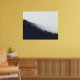 Landschaftsbild eines verschwindenden Nebel am Morgen über Waldschichten mit diagonalen Linien.