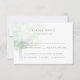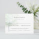 Elegante Misty Tree Response Karte mit Auswahl der Mahlzeiten, mit einer ruhigen, neugierigen Aquarelleiche stehend, die eine lange Liebe symbolisiert. Das Design ist Teil der Hochzeitskollektion "Misty tree". Auf der Kartenrückseite wird das helle und luftige Gefühl durch Aquarelltexturen ergänzt.