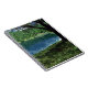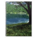 Ein ruhiger Ort für die Erholung, unter einem Baum am Ufer eines tiefblauen Sees, der die Reflektionen von Wolken und Bäumen im rippelnden Wasser anschaut. Eine 3D-Szene in Vue erstellt.