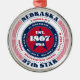 Zeigen Sie Ihren Staatsstolz in dieser Urlaubssaison mit diesem einzigartigen Weihnachtsschmuck, der Nebraska, dem 37. Staat, gewidmet ist. Es hat rote, weiße und blaue patriotische Farben mit einem runden Typografie-Design auf weißem Hintergrund. Der Text enthält Fakten über den Staat, wie seinen Namen, seine Hauptstadt, die Abkürzung des Staat, die Region, die Zeitzone, die geografischen Koordinaten, das Jahr seines Staates und den Namen seines Bewohners. Es ist ein großartiges Geschenk für diejenigen, die ihren Staat feiern möchten oder für diejenigen, die Gefühl nostalgisch über ihren Zuhause-Staat sind.