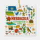 Commemorate your trip to the state of Nebraska with this modern keepsake Christmas ornament, featuring hand-drawn style illustrations of iconic food, animals, landmarks, landscapes, and culture. Personalize the back to mark your US adventure and create a memory you'll hang up on the tree for the Holidays year after year.