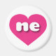 Dieser Magnet zeichnet sich durch ein pulsierendes, heiß rosa Herz aus, das die fett-, weiß-, abgerundeten Kleinbuchstaben ne enthält, eine spielerische Abkürzung für Nebraska, den Staat des Maisspreukers.