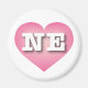 Dieser Magnet verfügt über ein rosa Herz mit einer weiß gekalkten Mitte, die die fett-, weiß-, Großbuchstaben NE enthält, die offizielle Abkürzung von Nebraska, dem Staat des Maisuskers.