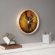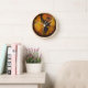 Original Watercolor Nebula Wanduhr, um die Zeit zu erzählen, während sie über das Universum nachdenkt. Orangen, Gelb und Schwarz bilden einen dramatischen Hintergrund für die weißen Hände der Uhr.