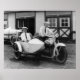 Vintages Foto von Jimmy Murphy, Sieger des 500 Meilen Auto Rennen in Indianapolis, Indiana, 30. Mai 1922, und Mechaniker Ernie Olson, sitzend auf Harley Davidson Motorrad und in Sidecar. Das Foto wurde am 22. Juni 1922 aufgenommen. Rennwagen im Hintergrund. LOC Originalmedium: Fotodruck.
