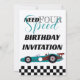 Machen Sie sich bereit, mit dieser Need for Speed-Geburtstagsveranstaltung zu rennen, mit einem kühnen Rennwagen-Design, das perfekt für Kinder, Jugendliche oder alle Lieben von schnellen Autos geeignet ist. Diese Einladung eignet sich hervorragend für sportliche Party und Set den Ton für ein actionreiches und spannendes Fest. Vollständig anpassbar mit Ihren Party-Details.