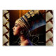 Diese Karte zeigt ein atemberaubendes Bild von Königin Nefertiti, der berühmten ägyptischen Königin für ihre Schönheit und ihren Power. Das Kunstwerk besticht durch seine elegante Eleganz, die mit ihrer blauen Krone und ihrem aufwändigen Schmuck geschmückt ist. Der Hintergrund zeigt Elemente der alten ägyptischen Kultur und fügt dem Portrait Tiefe und historischen Kontext hinzu.