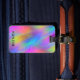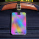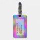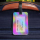 Ein abstraktes Neondesign. Personalisieren Sie das Programm mit einem Namen auf der Vorderseite und einem Namen und einer Adresse auf der Rückseite.