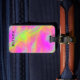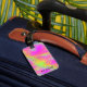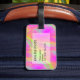 Ein abstraktes Neondesign. Personalisieren Sie das Programm mit einem Namen auf der Vorderseite und einem Namen und einer Adresse auf der Rückseite.
