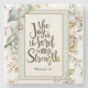 Der Untersetzer aus künstlerischen Zitatsteinen zeigt ein rustikales, blumengeschmücktes Aquarellbild mit weißen Blume, Eukalyptus und blauen Blätter. Es zeigt eine ermutigende Bibelverse Nehemiah 8:10, "Die Freude des Herrn ist meine Stärke."
