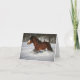 Ein schöner Clydesdale Stallion läuft durch ein Wintermärchenland auf dieser schönen Anmerkungskarte.