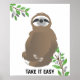 Achten Sie darauf, dass das Poster mit leicht meditierendem braunen Faultier aufgehängt wird.