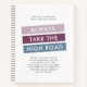 Nehmen Sie immer das High Road Motivierend Quote Journaling Notebook.. Die ehrenhafte oder ethische Handlung ist nicht immer einfach... aber wenn Sie sich nicht sicher sind, was Sie in einer schwierigen Situation tun sollen, können Sie nicht verlieren, wenn Sie die Straße überqueren. Der Sprichwort "Always Take the High Road" überlagert sich auf modernen lila-, Lila- und blau-grauen Streifen mit dem Anfang und Ende des Textes in schwarzer Sans Serif Typografie. Worte und Design von Barbara Casey, Inspiration Schriftstellerin.