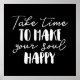 Nehmen Sie sich Zeit, um Ihr Soul glücklich zu machen Inspiration Schwarz-Weiß-Zitat Sprichwort Typografie *Anpassen Sie es! Wählen Sie Ihre eigene Hintergrundfarbe aus.