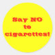 Rote Worte "Nein zu Zigaretten sagen" auf einem gelben Hintergrund. Motivation, den Mut zu haben, Nein zu Zigaretten zu sagen. Das wäre gut an Schulen oder an anderen Orten junger Menschen.