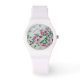 Diese anpassbare Apple Blossom Ladys Watch zeigt einen schönen Gezwitscher von Spring Apple Blüte. Das Set ist in einer durchsichtigen Uhrenband ganz in Weiß gehalten, auch wenn Sie sich für eine andere Farbe oder Farbe entscheiden. Ein ideales Geschenk für jede Frau, die im Herzen jung ist.
