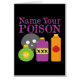 Diese lustige Cartoon-Illustration "Name Your Poison" beinhaltet eine grüne Flasche mit einem gelben Schädel darauf, eine lila Mondflasche mit x's und eine orangefarbene Flasche mit einer roten Bombe darauf! Dieses coole Trinken-Spaß-Design ist das ideale Geschenk für einen Barkeeper, der auf der dunklen Seite lebt, oder für jeden, der seine Getränke gerne zum Spaß und Gefährlich macht!