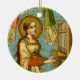 In diesem Detail aus einem prächtigen neogotischen schweizer Hingabe, St. Cecilia von Rom (3. Jahrhundert) wird gezeigt, wie man eine aufrechte Pfeifenorgel vor einem Aquarell spielt, der mit Goldsteinen und Sternen gemustert ist. Ihr langes Aubrandhaar hängt locker und stürzt über die Schultern und den Rücken hinab. Sie trägt ein mittelalterliches, cremefarbenes, grün gesäumtes Kleid über einem dunkelrot-orangefarbenen Kirtel. Das Kleid hat einen viereckigen Ausschnitt und Glockenärmel. + Trotz ihres privaten Gelübdes der Jungfräulichkeit wurde St. Cecilia zu einer arrangierten Ehe mit einem Heiden namens Valerian gezwungen. Während der Festlichkeiten, so wird gesagt, sang St. Cecilia "in ihrem Herzen zum Herrn", anstatt zu revellieren; daher ihr Patronat der Musiker (vor allem Organisten) und Sänger Die Ehe war nie vollendet. Das kurze daran ist, dass ihr neuer Ehemann, der eine Erscheinung des Engels gesehen hat, die die Tugend seiner Ehefrau bewachte, zum Christentum konvertierte und ihr Gelöbnis respektierte. + Epilog: St. Cecilia, ihr Ehemann St. Valerian und ihr Schwager St. Tiburtius waren alle märchenhaft. Aber das ist eine Geschichte für einen weiteren Tag! + Fest: 22. November + Image Credit (BNG 02): Detail eines antiken neogotischen Bildes von St. Cecilia, ursprünglich in Chromolithographie von Benziger & Co., Einsiedeln, Schweiz, Ende 19.-Anfang 20. Jahrhundert, aus der privaten Sammlung religiöser Ephemerien des Designers veröffentlicht.