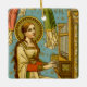 In diesem Detail aus einem prächtigen neogotischen schweizer Hingabe, St. Cecilia von Rom (3. Jahrhundert) wird gezeigt, wie man eine aufrechte Pfeifenorgel vor einem Aquarell spielt, der mit Goldsteinen und Sternen gemustert ist. Ihr langes Aubrandhaar hängt locker und stürzt über die Schultern und den Rücken hinab. Sie trägt ein mittelalterliches, cremefarbenes, grün gesäumtes Kleid über einem dunkelrot-orangefarbenen Kirtel. Das Kleid hat einen viereckigen Ausschnitt und Glockenärmel. + Trotz ihres privaten Gelübdes der Jungfräulichkeit wurde St. Cecilia zu einer arrangierten Ehe mit einem Heiden namens Valerian gezwungen. Während der Festlichkeiten, so wird gesagt, sang St. Cecilia "in ihrem Herzen zum Herrn", anstatt zu revellieren; daher ihr Patronat der Musiker (vor allem Organisten) und Sänger Die Ehe war nie vollendet. Das kurze daran ist, dass ihr neuer Ehemann, der eine Erscheinung des Engels gesehen hat, die die Tugend seiner Ehefrau bewachte, zum Christentum konvertierte und ihr Gelöbnis respektierte. + Epilog: St. Cecilia, ihr Ehemann St. Valerian und ihr Schwager St. Tiburtius waren alle märchenhaft. Aber das ist eine Geschichte für einen weiteren Tag! + Fest: 22. November + Image Credit (BNG 02): Detail eines antiken neogotischen Bildes von St. Cecilia, ursprünglich in Chromolithographie von Benziger & Co., Einsiedeln, Schweiz, Ende 19.-Anfang 20. Jahrhundert, aus der privaten Sammlung religiöser Ephemerien des Designers veröffentlicht.