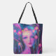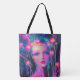 Treten Sie ein in eine glühende Traumwelt mit diesem surrealen Neonportrait einer Himmelsgöttin. In strahlend rosa, elektrisch blau und leuchtend gelb gebadet, verbindet dieses Kunstwerk ätherische Schönheit mit psychedelischer Fantasie.