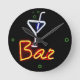 Fun Wanduhr mit schwarzem Gesicht und Foto eines Neonzeichens, das Bar mit einem Martini-Glas liest. Tolle Uhr für Zuhause Bars, Spielräume und mehr.
