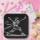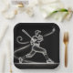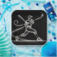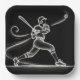 Glühender Neonbaseballspieler, der mit hellen Spuren auf schwarzem Hintergrund eine Fledermaus am Ball schwingt