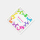 Leider ist beim Bestellvorgang nicht die Größe angegeben, zumindest habe ich es nicht gesehen. Der Name "Duschen"-Servietten ist etwas seltsam :-) Aber man kann aus verschiedenen Designs auswählen und es sieht ganz nett aus. Ich würde mir aber noch viel mehr verschiedene Farben und Muster wünschen! Insgesamt eine nette Idee für ein personalisiertes Accessoire zu allen möglichen Feiern. Der Druck ist OK, er ist nur ganz leicht unscharf.
