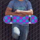 Neon Blue & Pink Checkered Pattern Skateboard