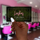 Rosa Neon inspiriert "Lashes" Skript auf einem Boxwood-Hintergrund mit weißem Text und Trimm.
