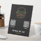 Neon Burger mit anpassbarem Virtual Tip Text und QR Codes auf schwarzem Hintergrund. Verwendung für mobile Lebensmitteltransporter, Esser und andere Lebensmitteldienstleister.