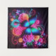 Neon Butterfly & Rose Wandteppich