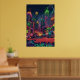 Erleben Sie den wilden Puls des Nachtlebens in der Stadt mit diesem surrealen urbanen Kunstwerk, wo Neonfarben und verschlissene Wolkenkratzer in chaotischer Energie kollidieren. Ideal für die Liebhaber der neonischen Stadtkunst, der Straßenkunst, der Stadtdrucke und der dynamischen grafischen Stadtgestaltung.