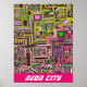 Neon City Slogan mit futuristischem Sci Fi Thema aus einem originellen handgezeichneten Design von Nola Edsal aus quadratischen und rechteckigen geometrischen Doodle-Formen mit verschiedenen geschäftigen Mustern. Dieses atemberaubende, künstlerische Design ist aufwändig und detailliert und verwendet die hellen Pop-Farben Rosa, Gelb, Kalkgrün und Schwarz. Ideal für Zuhause- oder Bürodekoration, um Ihrem Leben einen Pop Farbe zu verleihen.