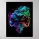 Farbiger Regenbogenneonenspielregler mit fluoreszierendem galaxischem Rauch.