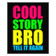 Helle Farben wie Neon ... große Blockbuchstaben auf schwarzem Hintergrund. Cool Story, Bro! Erzähl es nochmal!
