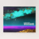 Entdecken Sie die Tiefen einer kosmischen Traumlandschaft, wo lebendige türkisfarbene und lila Farbtöne Himmel und Landschaft malen. Ein massiver aquamariner Nebel dominiert die Szene, sein ätherisches Glühen beleuchtet die umliegenden Sterne. Sternschnuppen breiten sich über den Himmel und verlassend Spuren von Licht in ihrem weck. Die Landschaft unten ist in einem sanften rosa Glühen gebadet, was eine andere Weltanschauung schafft. Verlieren Sie sich in der Schönheit und dem Geheimnis dieser faszinierenden Szene, wo die Grenzen zwischen Realität und Träumen verwischen.