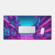 Neon Cyan Magenta Cyberpunk Cityscape Gamer Schreibtischunterlage