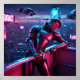 Neon Cyber Warrior Poster - Futuristic SciFi