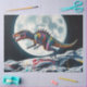 Neon Dinosaur Raptor Moon Decoupage Paper Seidenpapier