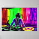 EIN DJ, DER IN EINEM NEON CLUB SPINNT.