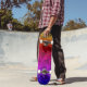 Regenbogenfarbener Haufen aus Echodreiecken gemustertes Skateboarddeck