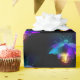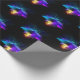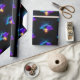 Antikes, mechanisches Feuerwerk mit Glühbirne und dünnen Flügeln glänzt orange, lila, türkis auf schwarzem Hintergrund. Steampunkstil.