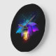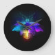 Neon Firefly auf schwarz Große Wanduhr