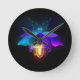 Neon Firefly auf schwarz Runde Wanduhr
