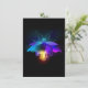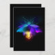 Antikes, mechanisches Feuerwerk mit Glühbirne und dünnen Flügeln glänzt orange, lila, türkis auf schwarzem Hintergrund. Steampunkstil.
