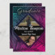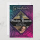 Lebhafter, farbenfroher tropischer Abschluss Einladung für graduierte Party. Schöne tropische Palmen Blätter Design auf der Vorder-und Rückseite mit maßgeschneiderten Foto Option.