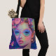 Ein atemberaubendes surreales Fantasieportrait einer strahlenden Frau, die mit leuchtenden Pastellgläsern und einer Krone aus neonfarbenen Blume und Obst geschmückt ist. Set gegen eine kosmische Blumentraumwelt mit schwimmenden Schmetterlingen, dieses digitale Kunstwerk strotzt vor Farbe, Magie und femininer Energie. Dieses Design ist perfekt für Produkte wie Kunstdrucke, Aufkleber, Notebooks und Bekleidung geeignet und verbindet Glamour mit psychedelischem Wunder für kühnen, ausdrucksstarken Ästhetik.
